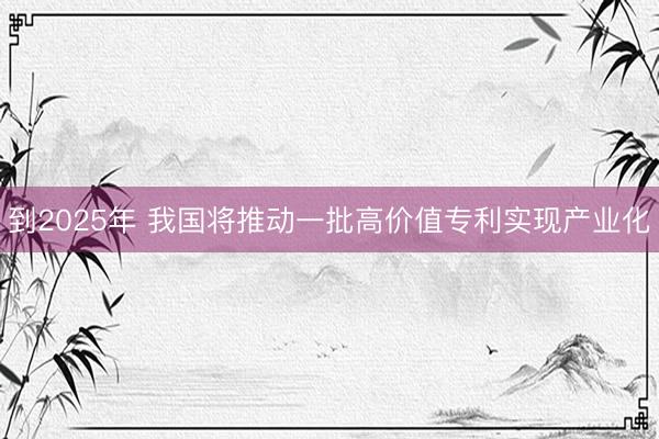 到2025年 我国将推动一批高价值专利实现产业化