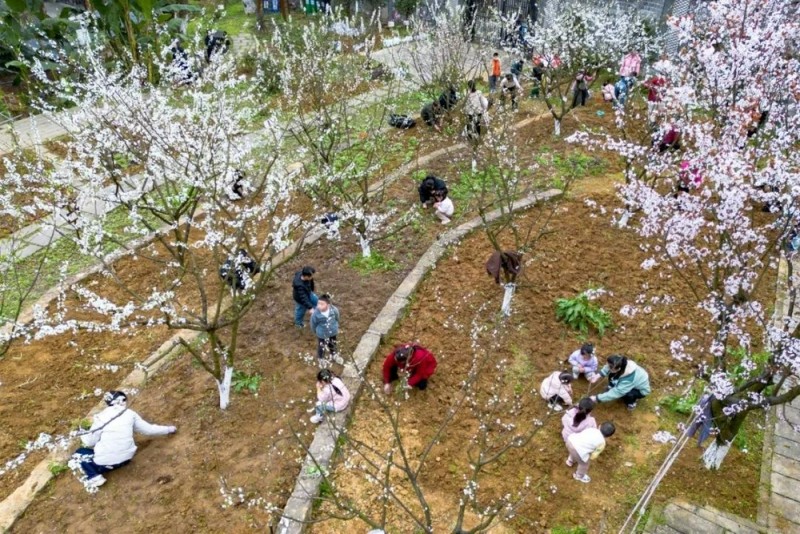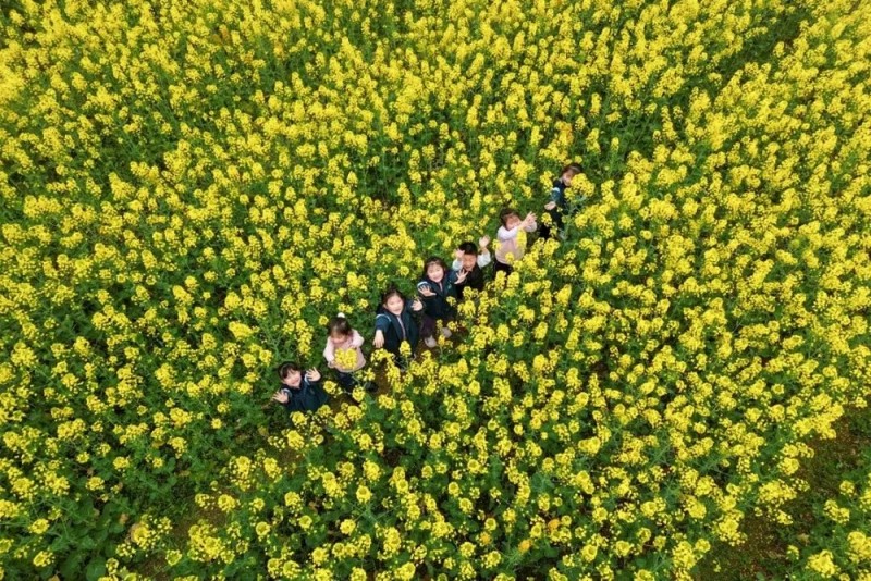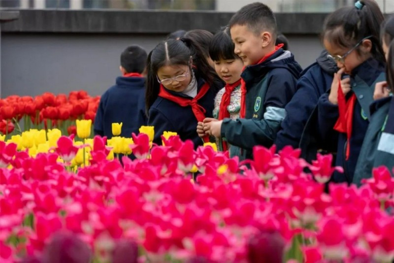 孩子们在花海中感受春天气息
